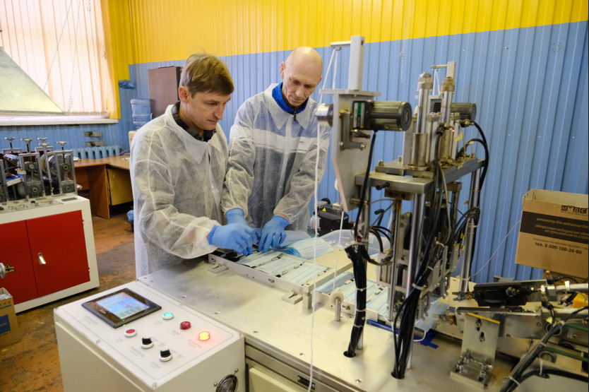 Новое производство тканевых масок широкого назначения на предприятии «Медсклад» в Бердске 19 февраля открыл министр промышленности, торговли и развития предпринимательства региона Андрей Гончаров.